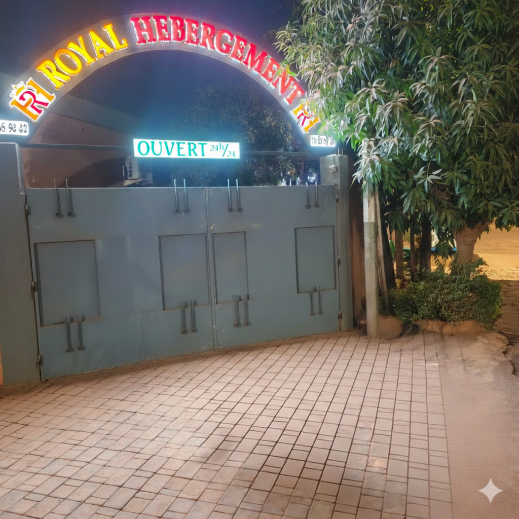 ROYAL HÉBERGEMENT vous propose des chambres confortables, un service attentif et des installations modernisées, pour un séjour sûr, chaleureux et authentiquement africain au cœur du Burkina Faso.